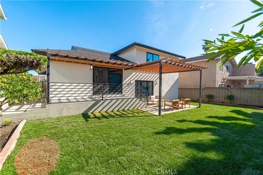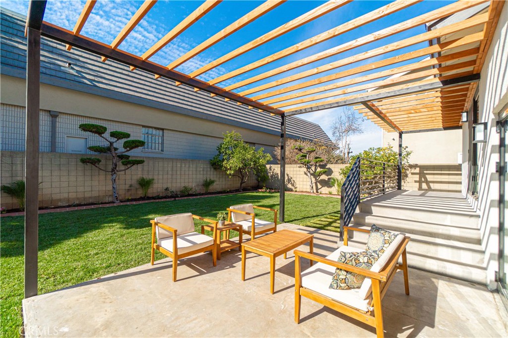 Conveniently situated, this residence ensures easy access to the 405 freeway, facilitating a smooth commute to LAX, downtown, and Long Beach. The outdoor spaces serve as a tranquil haven, featuring a newly landscaped front and backyard with lush grass and fruit trees.